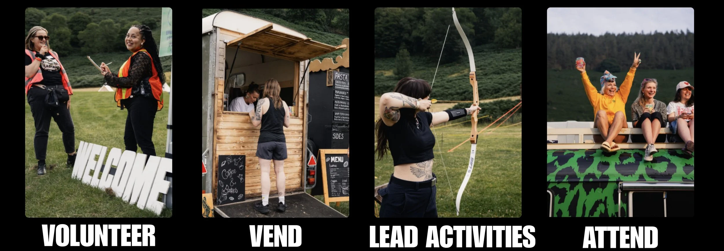 We’re so lucky to call Llangollen our home, and this page is all about the ways our awesome local community can get involved and be part of the adventure. Learn more about volunteering, vending and leading activities, as well as all the deets on our discounted day tickets available exclusively to local residents.